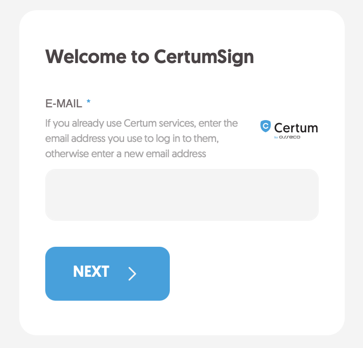 - If you already have an account in the Certum systems, use the same e-mail address which you used to create the store account. This will allow you to combine all services and speed up the CertumSign activation process.