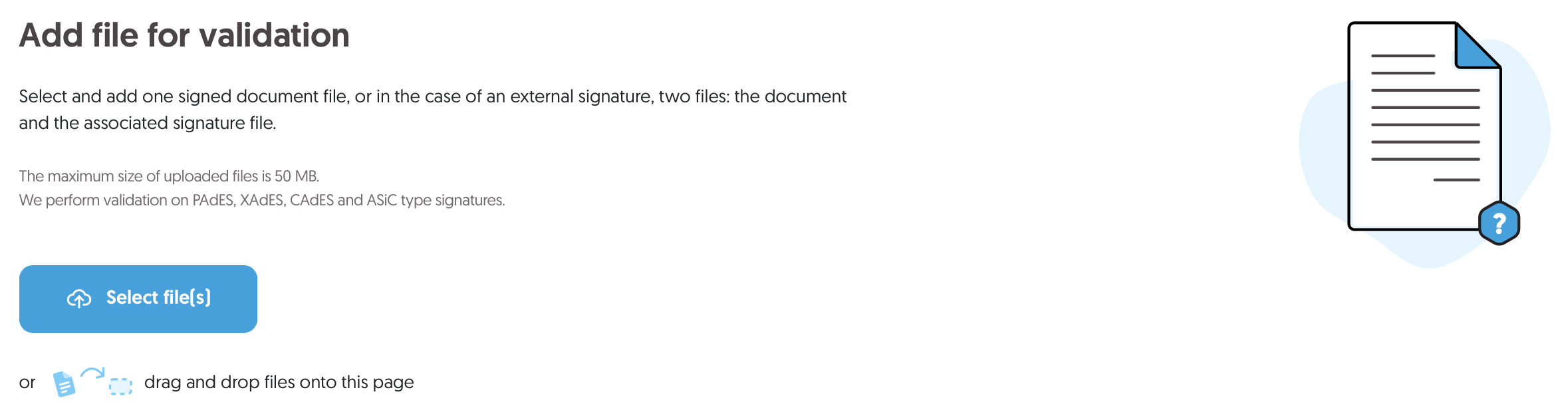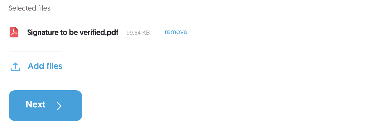 Validation of electronic signature – uploading a file from your device