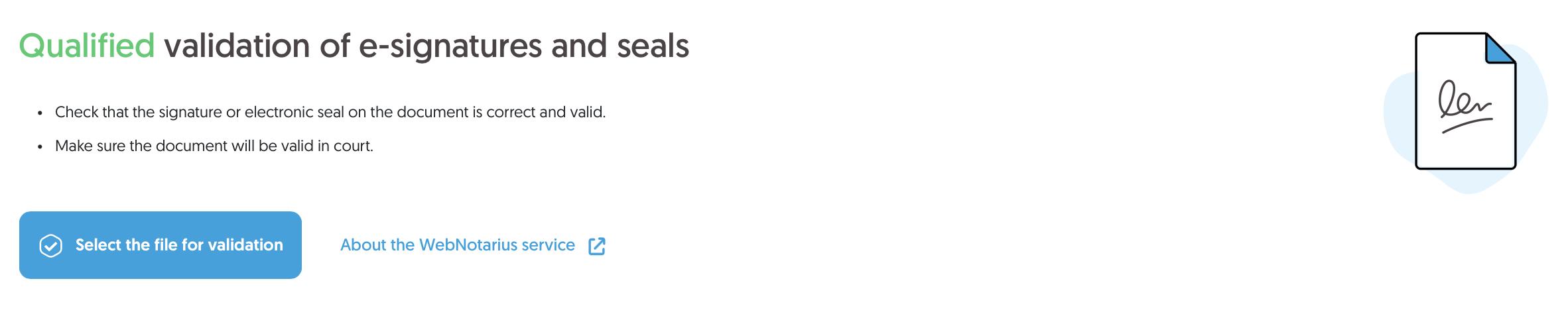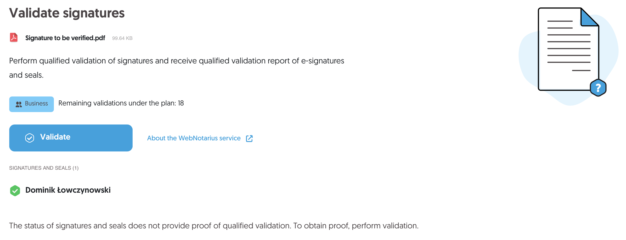 Validation of electronic signature – uploading a file from your device